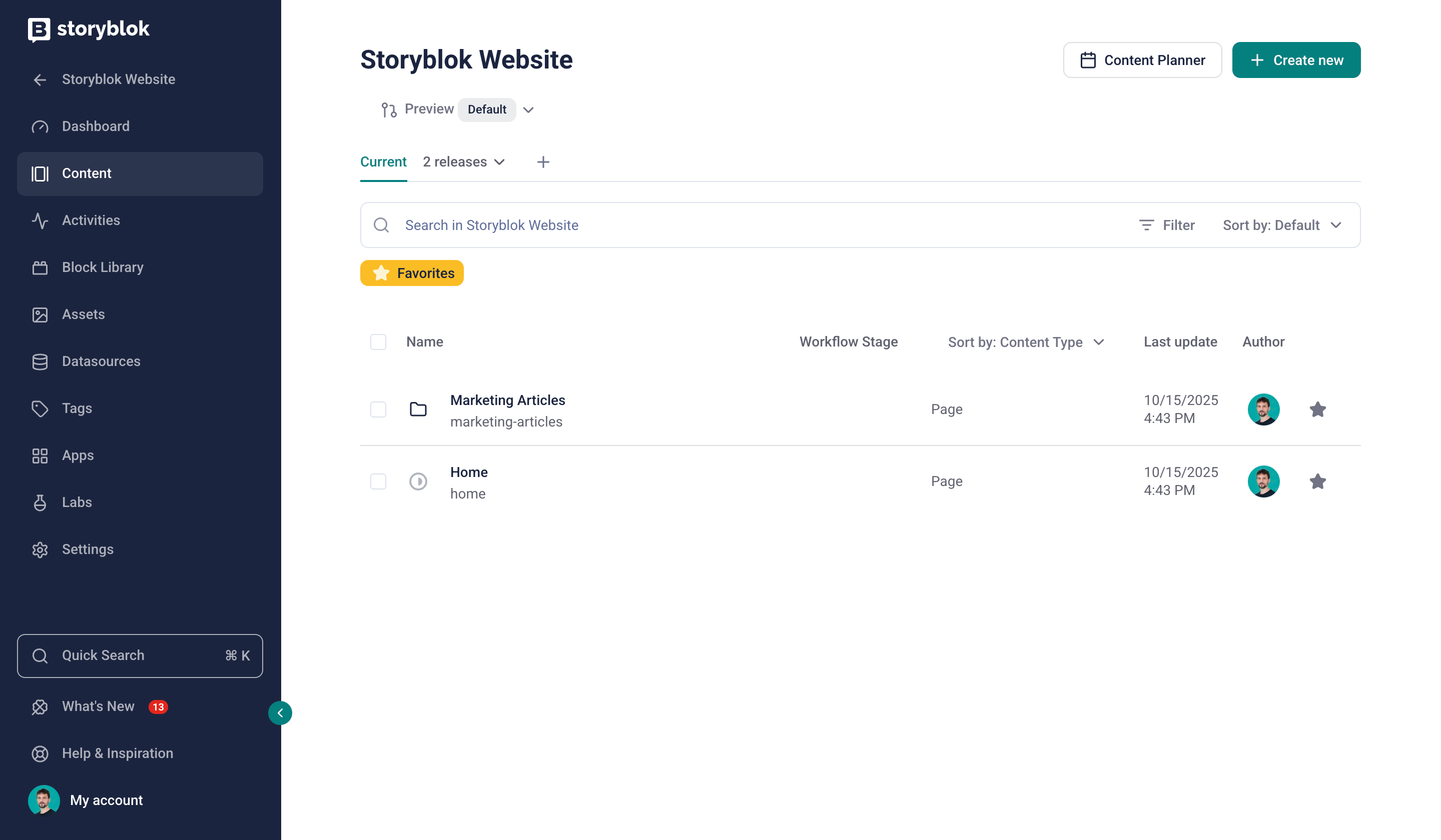 - Preview: The default stage. Content is editable and can be deployed to one or multiple pipeline stages.