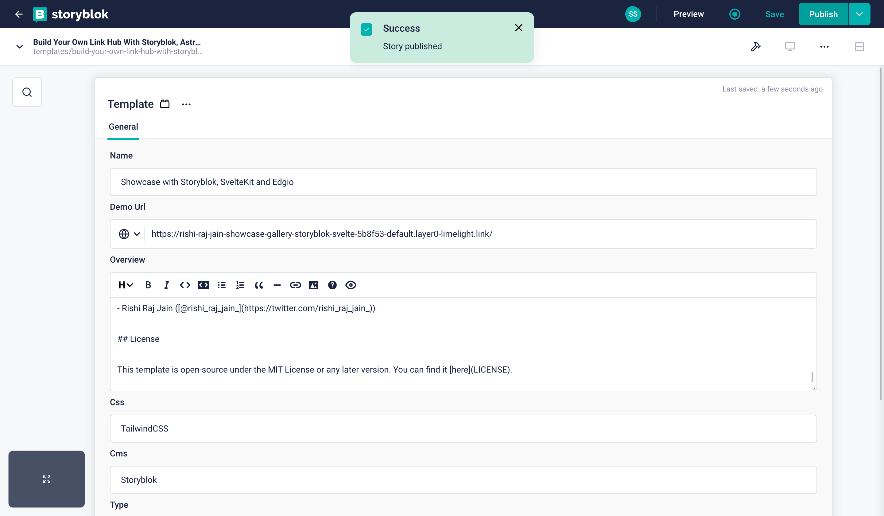 yarn run edgio:deploy Go ahead! Publish more content on Storyblok, and browse the /templates/slug route of your website to look for changes.